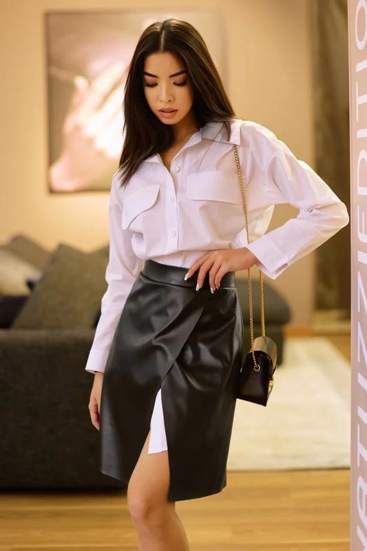 Параметры: Длина юбки: S=52 см, M=53 см, L=54 см, XL=55 см Тех. описание: Артикул: 1931.4991 Коллекция: Essential Категория: повседневные / городские/уличные / элегантные Сезон: осень / весна / демисезон Фасон: с запахом / расклешенный / трапециевидный Материал: эко-кожа Цвет: черный Декоративные элементы: открытый срез низа юбки и на запахе полочки Фурнитура: потайная молни Вид застежки: потайная молни Конструктивные элементы: запах Комплектация: юбка Уход за вещами: ручная стирка до 30° Обратите внимание!: Цвет изделия может отличаться, учитывайте цветопередачу камеры и монитора.