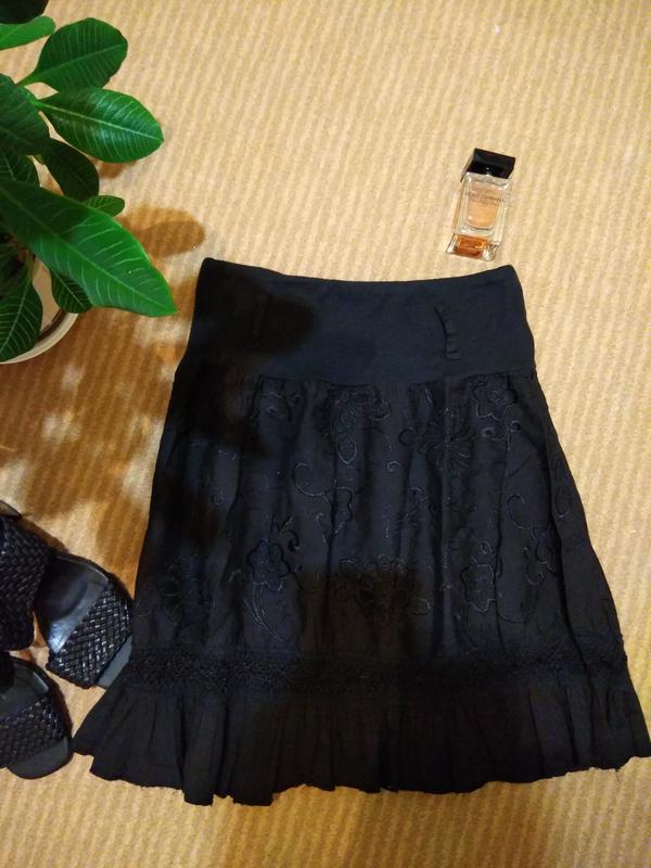 юбка котонова,вишита гладдю чорного кольору в дуже хорошому стані резинка гарно тягнеться,і приємна до тіла розмір S,M