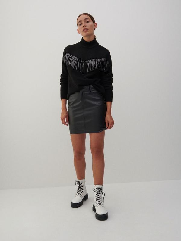 Міні спідниця зі штучної шкіри застібка на блискавку та ґудзик дві кишені з боків Розмір 36 Довжина 43 см Пояс 35 см