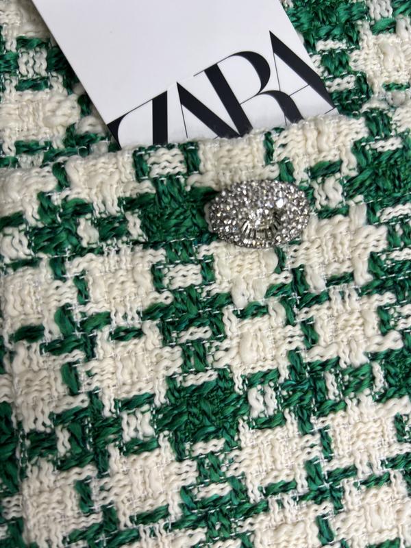 Юбка ZARA в клетку твидовая юбка , на кармашках стразы Оригинал