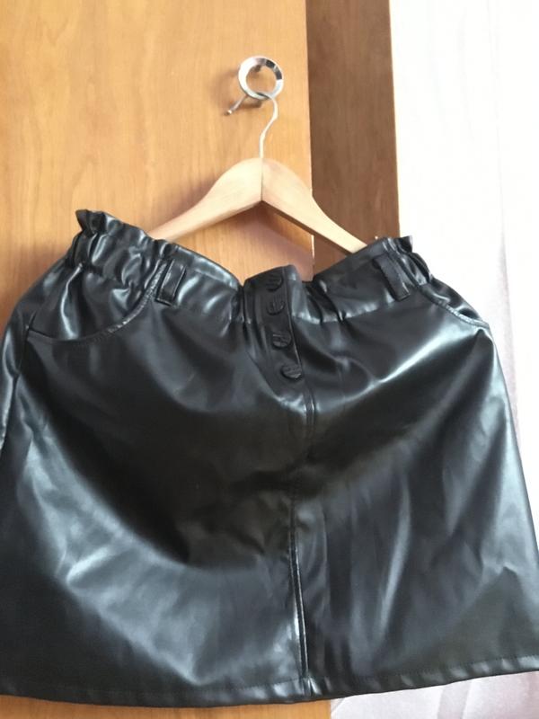 Шкіряна міні спідниця в розмірі М З резинкою на поясі та петельками для ремня