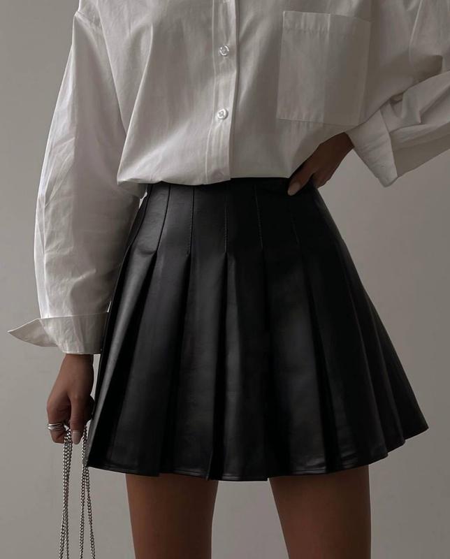 🔥NEW 🔥 спідниця ▪️мод 250 ▪️тканина : матова еко шкіра ▪️колір: чорний ▪️S-M , M-L ▪️605 грн Шкіряна теніска 😍 Довжина виробу 45 см; Якісна, матова, екошкіра; Висока посадка; Збоку на потайній блискавці; Розмір: | S-M | M-L Талія: 58-65 | 66 - 72 см Стегна : 90-96 | 97 – 103 см