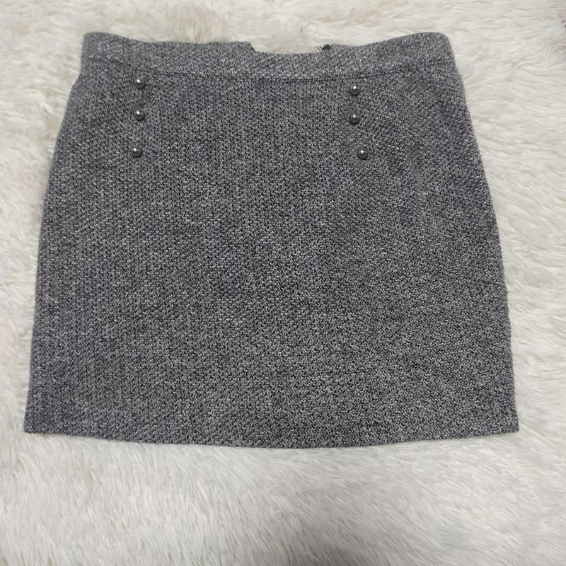 Спідниця міні сірого кольору, гарної якості, ширина - 37 см в поясі, довжина також 37 см. Єдиний недолік це зламана застібка ззаду, але можна виправити.