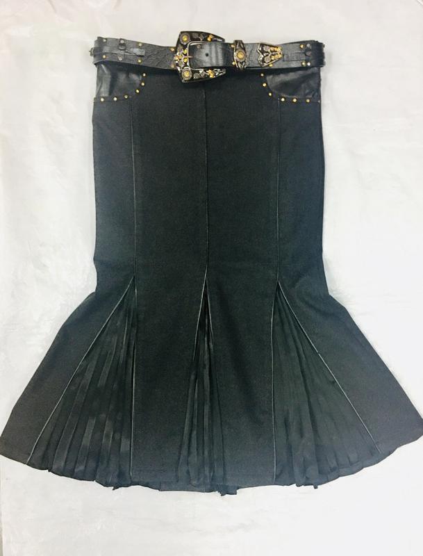 Юбка BLZ джинсовая , премиум уровня , коллекция Luxuri Fashion производства фабрики BALIZZA , бренд высокого качества , известный производитель роскошной женской одежды . Модель прямого силуета с расклешенным низом - годе, длинна миди, комбинирована натуральными кожаными вставками , и атласными гофрированными складами, украшена шикарным кожаным ремнем цвета со стразами Swarovski . Имеется шелковая трикотажная подкладка. Ткань изделия ― коттон Lux премиум с эластичной добавкой, тяжелая, красивая, мягкая, стрейчевая, красивого черного цвета , и натуральные кожаные вставки . Идеально комплектуется с блузами, свитерами или футболками. Производство Италия/Турция . Очень красивая , роскошная вещь , которая станет настоящим украшением любого гардероба . Шикарная стройнящая модель , красивый женственный образ для каждого дня или особого случая , стильная современная модель , мечта любой девушки . Хороший уровень исполнения изделия и мягкая , приятная текстура , а так же красивый презентабельный вид сделают эту вещь любимой одеждой для любой покупательницы , и прослужит Вам длительное время . Качественная одежда для самых требовательных покупателей и настоящих ценителей качества и красоты . Размер: 36, 40, 42, 44. пояс 1/2- 38, ОБ 1/2 - 40см. Длинна - 75 см