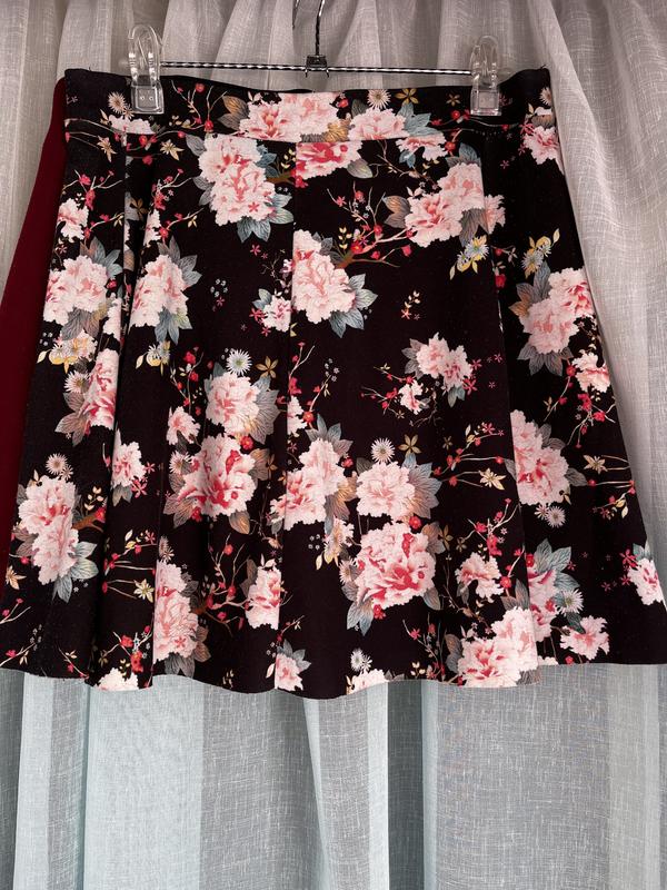 Красивые юбки,чёрная в цветочный принт и бордовая Талия на резиночке 2 шт за 200 грн