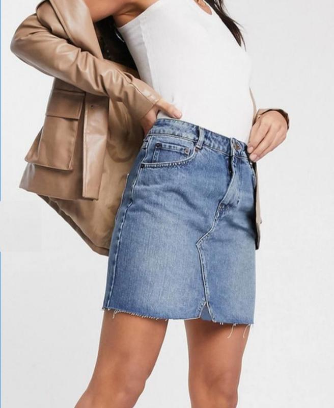 Стильна джинсова спідниця з необробленим низом, ПІТ 37, ПІБ 48, довжина виробу 45.