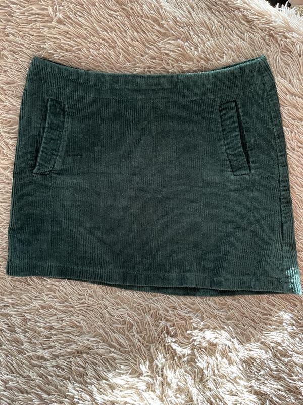 Міні спідниця гарного зеленого кольору , вільветова. Ззаду на блискавці. Носиться без поясу. Стан хороший,без дефектів. Розмір 36. Півобхват в поясі 38, довжина спідниці- 37 см. Форма трапеції