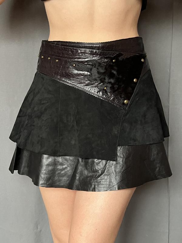 Трендовая мини юбка из натуральной лайковой кожи и замши с вставкой пони