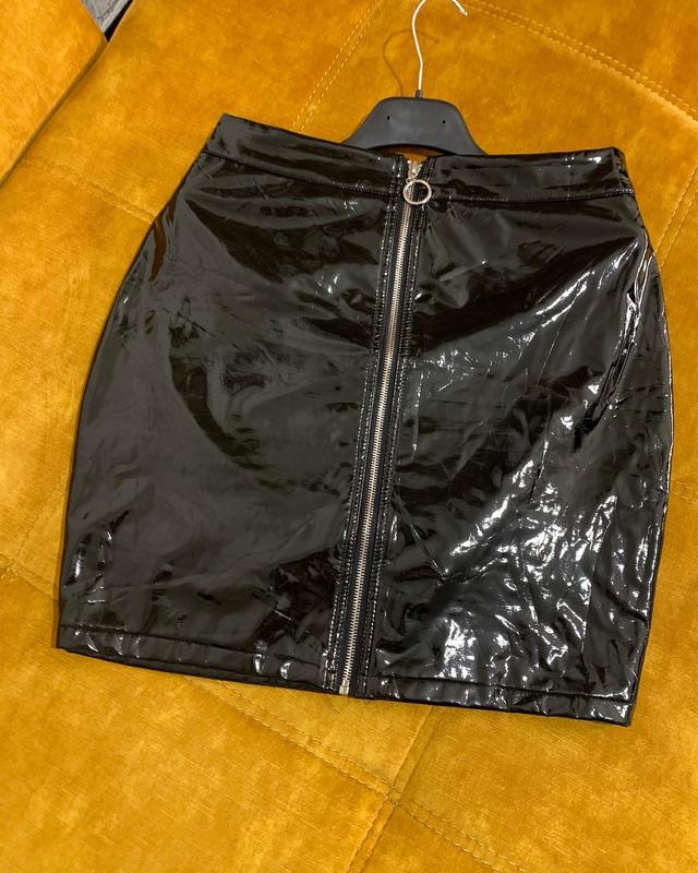 Спідничка з синтетичного матеріалу. Бірки немає, але її стан нової, точно ніхто не носив! Розмір L. По талії 38, по стегнах 47, внизу 45, довжина 47 см