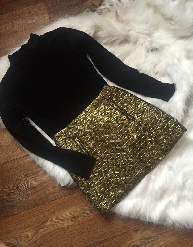 Стильна золота міні - спідниця для яскравої дівчини,яка любить виділятися з натовпу)!Дуже красиво виглядає під однотонний чорний гольф!