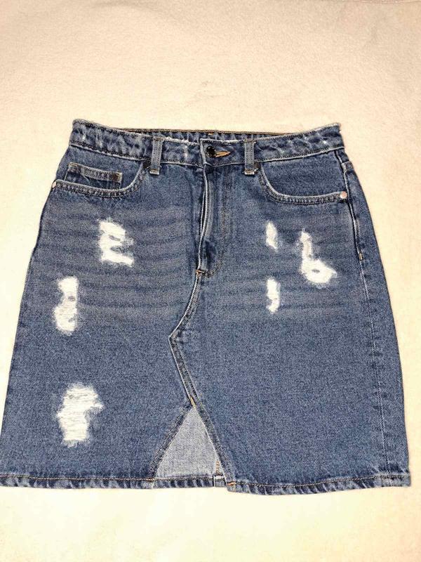 Продам джинсовую юбку размер м (38). талия-36см длина-45см