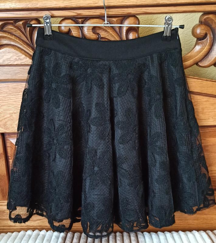 Спідниця, неймовірно ніжна як на дотик так і на вигляд. Гіпюр з гарними, м'якими квітками. З боку має замочок, на талії легенька резинка завдяки якій розтягується макс. до 72 см. в об'ємі (на фото вказано об'єм талії в звичайному вигляді).