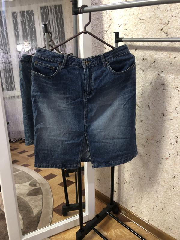 Юбка,фирма Route 66,дизайнерская.Стан идеальный.Синего цвета.100% коттон.Меет распорку спереди.размер L