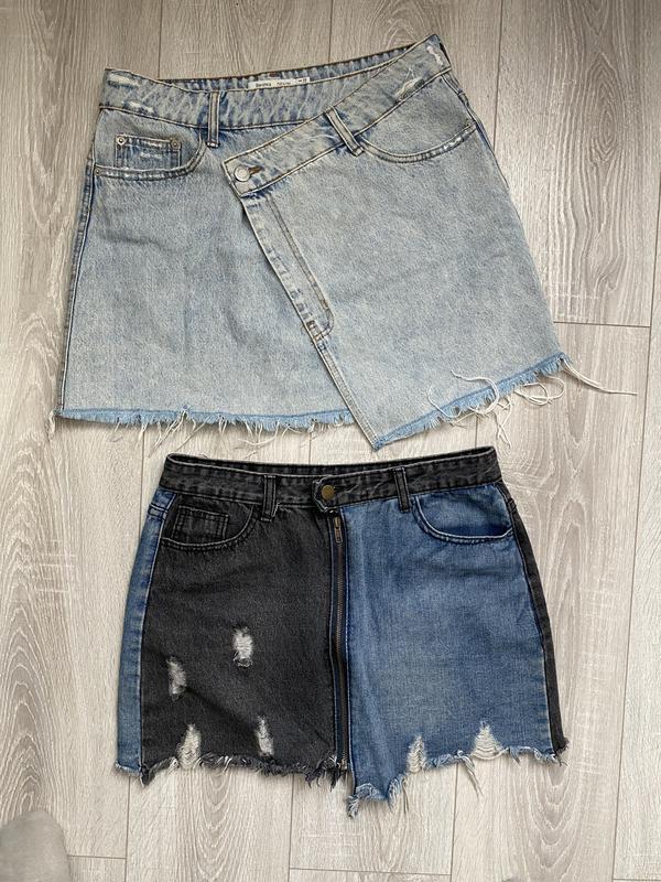 Джинсовая юбка на запах и на змейке размер м.