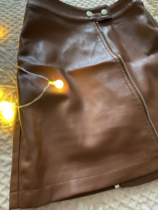 Юбка, под кожу, спереди на молнии с манящим кольцом. Коричнева Размер М