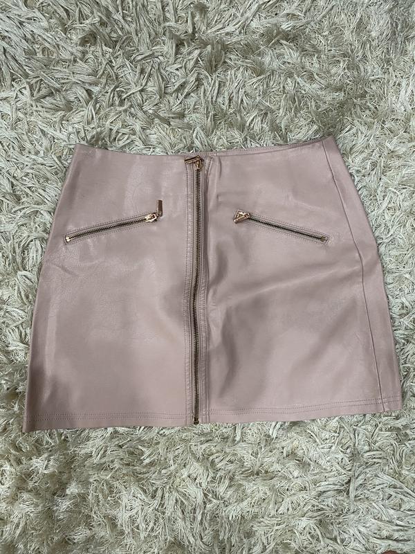 Юбка кожанная пудрового цвета размер с-м.