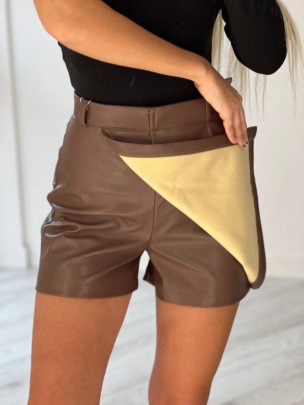 Юбка-шорты мод Мин . Размер: 42,44,46,48. Ткань: экокожа на флисе. Цвет: чёрный, коричневый, мокко, молоко.
