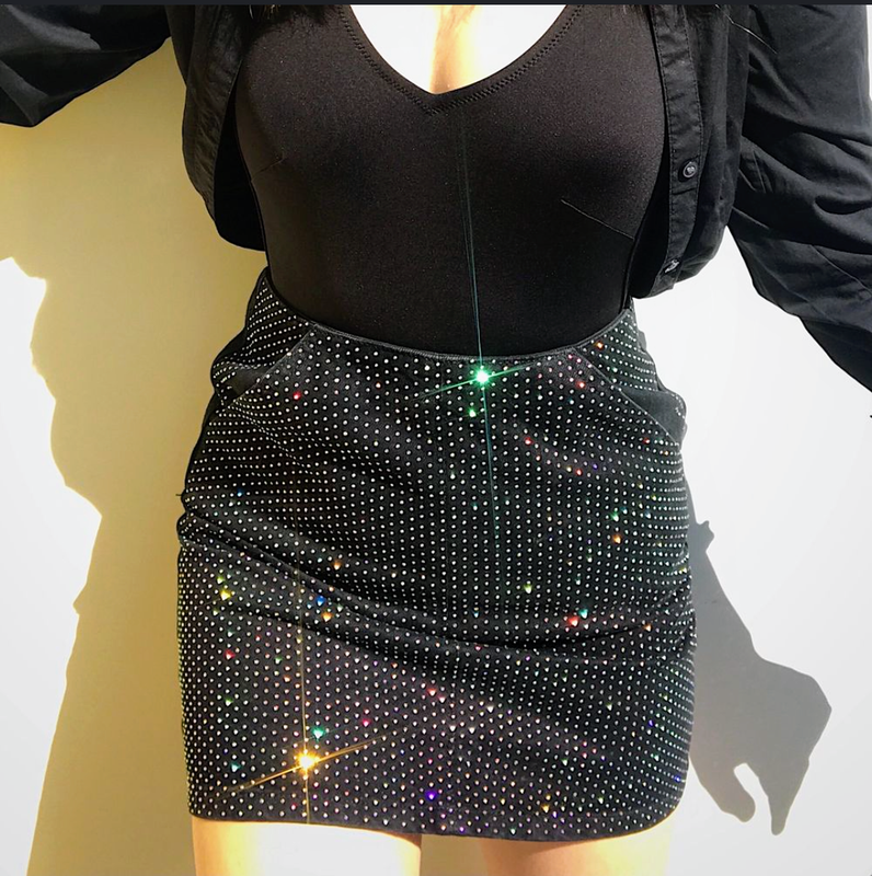 передня частина вкрита стразами переконаними, всі каміння на місці нова, талія до 70см, стегна до 90, довжина 40см