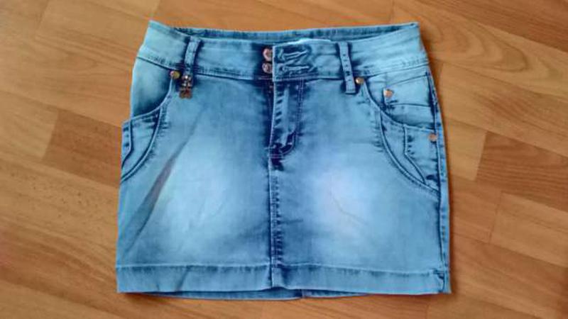 Юбка джинсовая в отличном состоянии одета 2 раза. Ширина верх 35 см, низ 38 см., Высота 31 см.