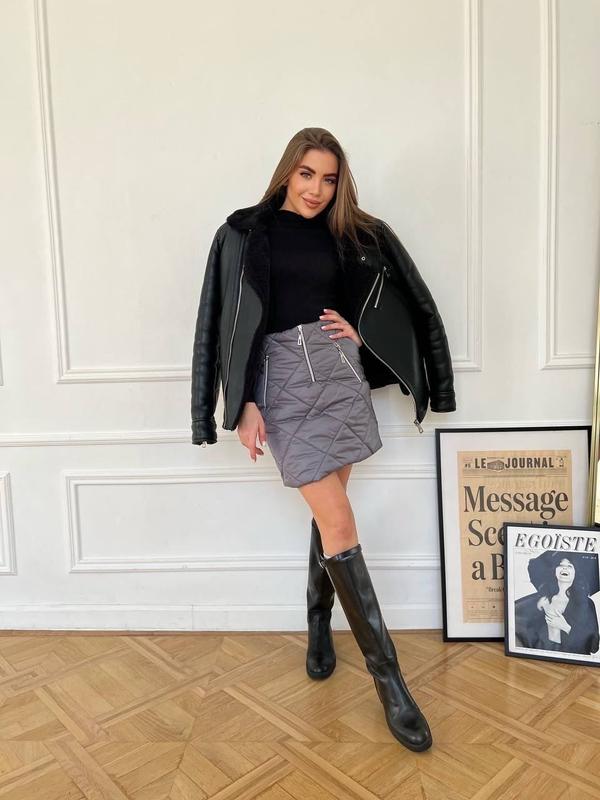 Юбка Мод cr 111 Ткань: Плащевка + силикон 150, на подкладке Цвет: графит Размер 40-42, 44-46 ЗАМІРИ: 40-42 Длина 42 см Талия 70 см ОБ 94 см 44-46 Длина 44 см Талия 74 см ОБ 100 см