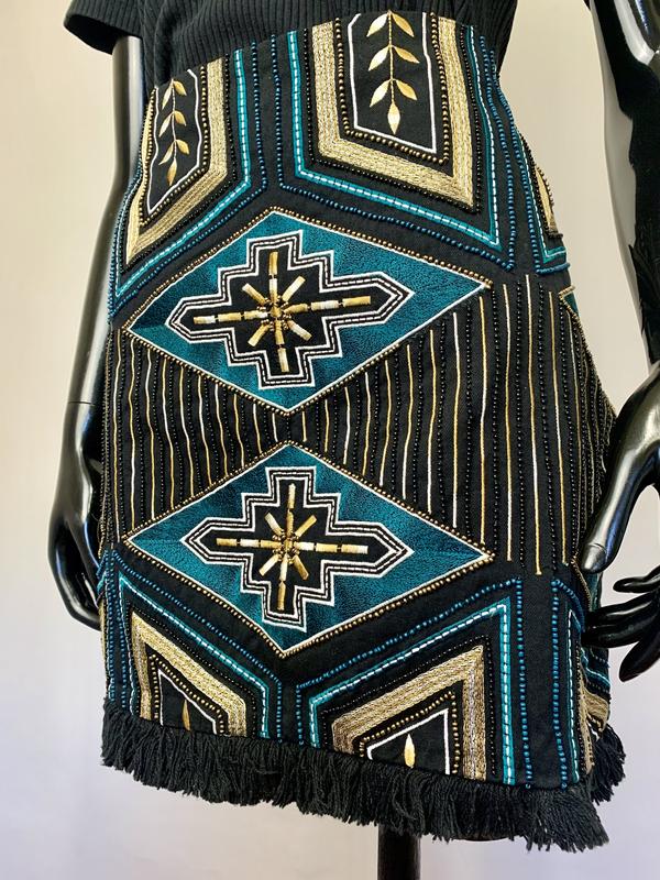 Мини юбочка с вышивкой Стан новый с биркой и дополнительным пакетиком с запасным бисером Бренд H&M Размер 10/40/L Талия 40 не тянется Бедра до 50 Длина 42 Материал коттон с подкладкой из хлопка Цвет черный (фото засветляет) Вышивка из бисера в изумрудных и золотых цветах Ну дуууже шикарна 😍😍😍 (На фото немного помиться, необходимость погладить)