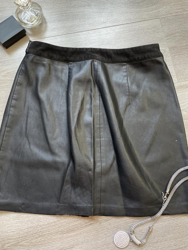 Мини юбка из эко кожи и вставками замши на молнии по всей длине Охват талии 70 длина изделия 41 Стан идеальный, подойдет на размер с и м
