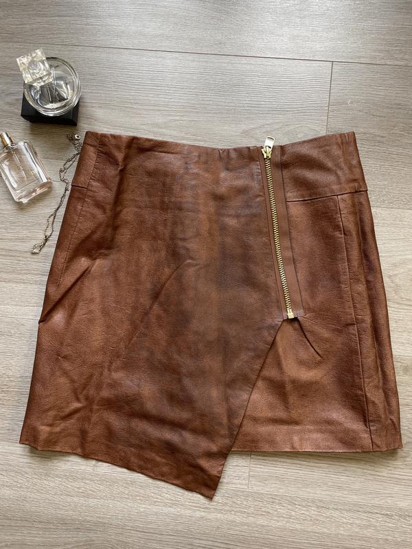 Крутая асимметричная юбка из эко кожи на молнии Длина изделия 41см Охват пояса 76 Длина передней удлиненной части 47
