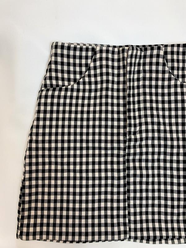 Мини юбка в клетку высокой посадки по фигуре длина 39 талия 30 стегна 41