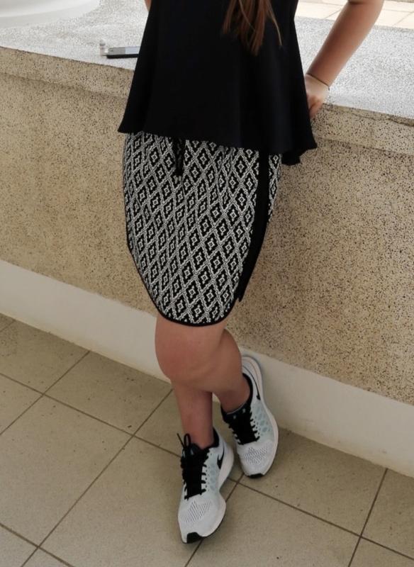 Юбка NAUTICA Цвет: ч/б принт Размер: USA XS ⁇ EUR S ⁇ MEX S Состав: 97% вискоза, 3% эластан Талия: 33 см (на резинке в спокойном состоянии) Длина от талии: 44 см На фото рост 158см Есть возможность приобрести вместе с верхом к костюму, (фото в карусели)