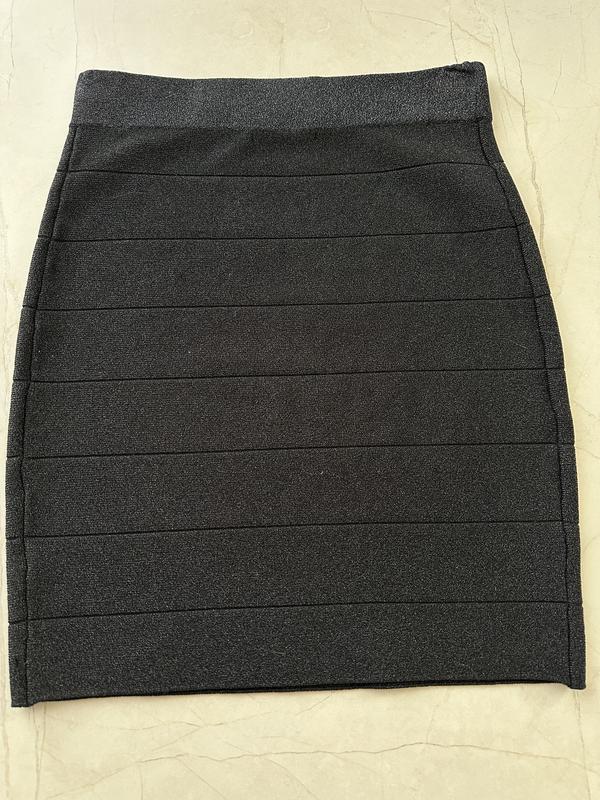 Юбка тянется, с тоненькой люрексовой ниточкой, но не блестит ярко. Тканина - резинка.