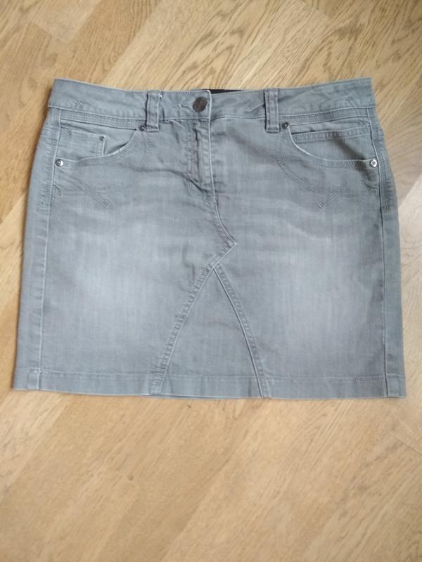 Джинсовая юбка Marks & Spencer с украшенным вышивкой карманом. Размер 12. Замеры: пояс 41 см, высота 40 см.,бедра 48 см