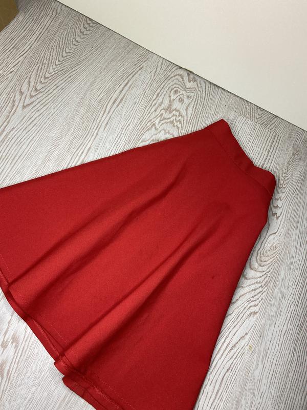 Красная юбка, сбоку замок и пуговица. Имеет небольшие пятнышки, при носке не видно.