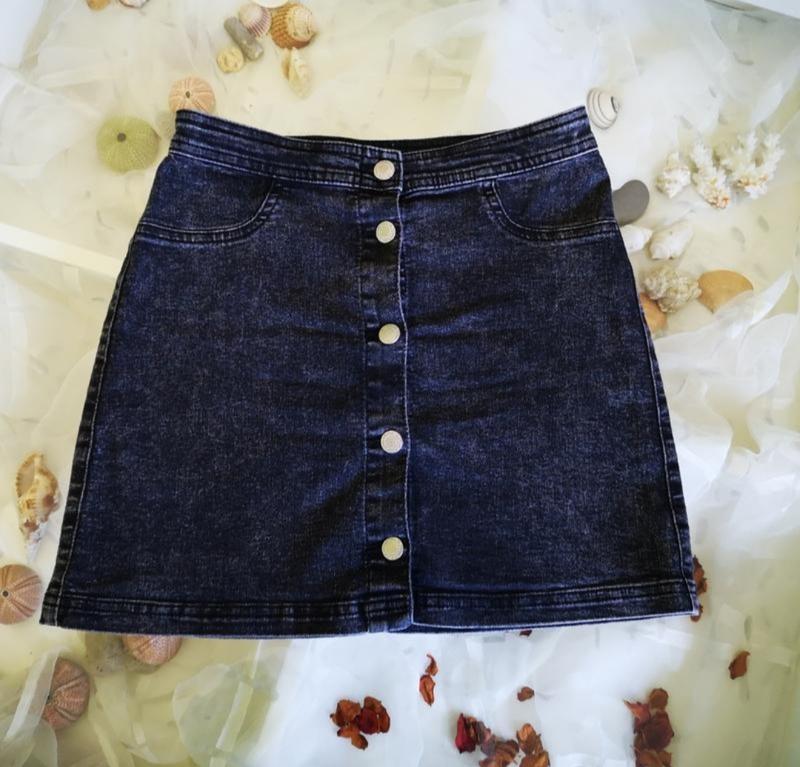 Спідниця. Чорний джинс. ПО в поясі 33см. ПОБ 42см. ПО низу 47см. Довжина 39см. Розстібається повністю. Карманів немає. Дуже гарно тягнеться. Одівалась на розмір XS-S.