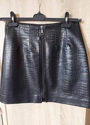 Юбка-мини с принтом под кожу от Stradivarius. Талия 72 см, длина 41 см, бедра 98‐100 см.