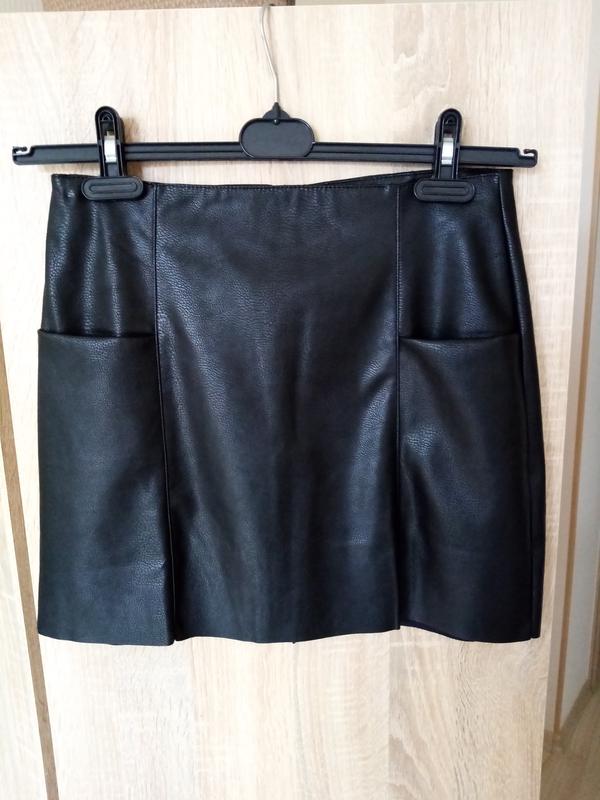 Юбка мини из мягкой эко-кожи от Pull & Bear. Спереди 2 кармана, потайная молния сзади. Талия 68 см, длина 39 см, бедра 88 см. Очень приятная на ощупь.