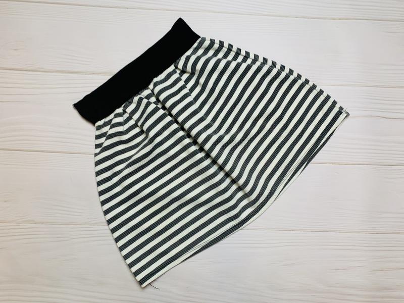 Юбка мини в полоску с широким поясом-резинкой.