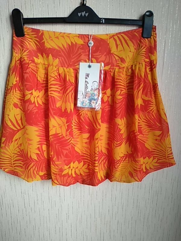 Милая юбочка- баллон,сбоку есть молния.Небольшая кокетка,носиться чуть спущенной на бедра.Одетой смотрится как на фото2 в горошек.