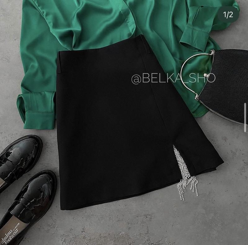 Спідниця міні Розріз на ніжці прикрашений камінчиками Тканина костюмка