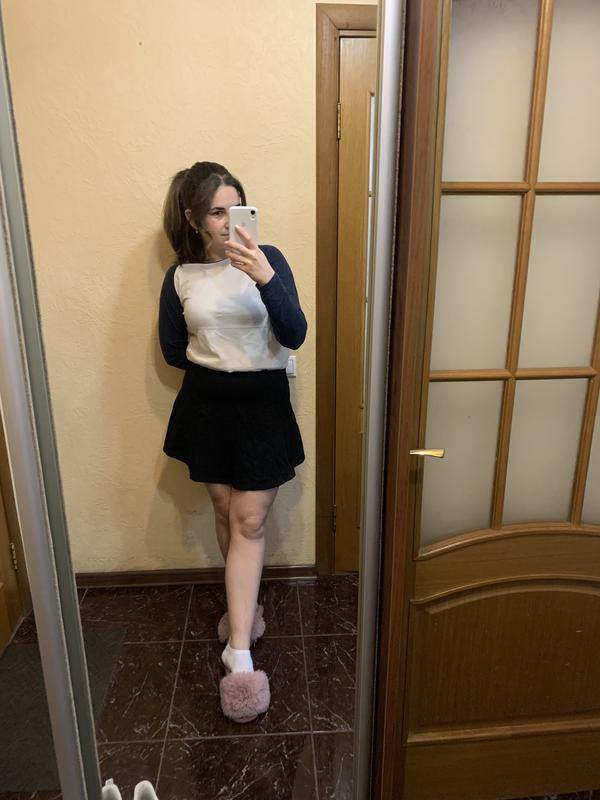 Мини юбка, клеш. Черная зади на молнии. Стан - идеальный. Размер пишет хс-с, но на фото я какая 47 М, мой рост 166см, 66кг