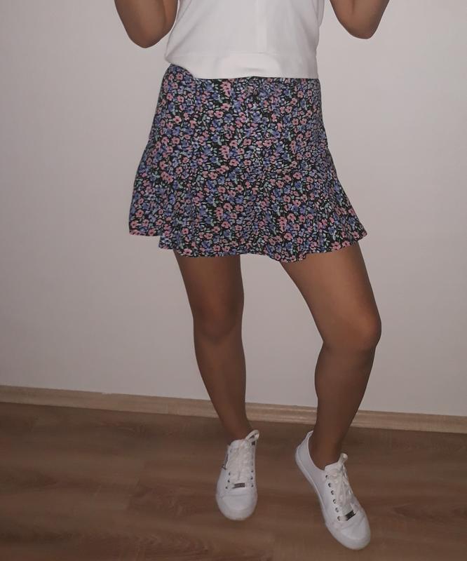 якісна стильна спідниця шорти в чрному кольорі розмір М.L.підходить до будь якого взуття з розовими квітками розмір в наявності XXS.XS.S