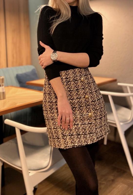 Очень короткая твидовая юбка под известный бренд. Подойдет очень худенький девочке размером XXS-XS. Зарекомендовало в инстамагазине, производитель Китай. Состояние - добрый (один нюанс, сзади плетения немного разошло, на фото в конце) Возможно кому-то нужно для фотоземки, потому что просто ходить - ну дууужуще секси ) Длина 39 см Полуобхват талии 31 см Полуобхват бедер 42 см