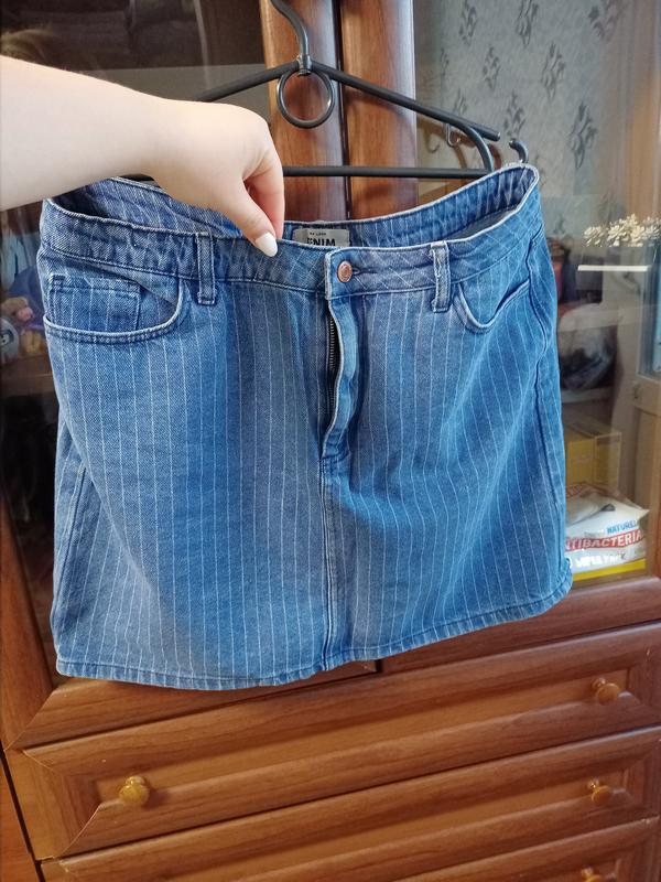 Мини юбка, хороший джинс, цвет темно голубой в белую полоску, есть кармашки. покупала на стойке Длина 44 см Полуохват талия 45,5см Полуохват бедер 58см Низ 58см торг