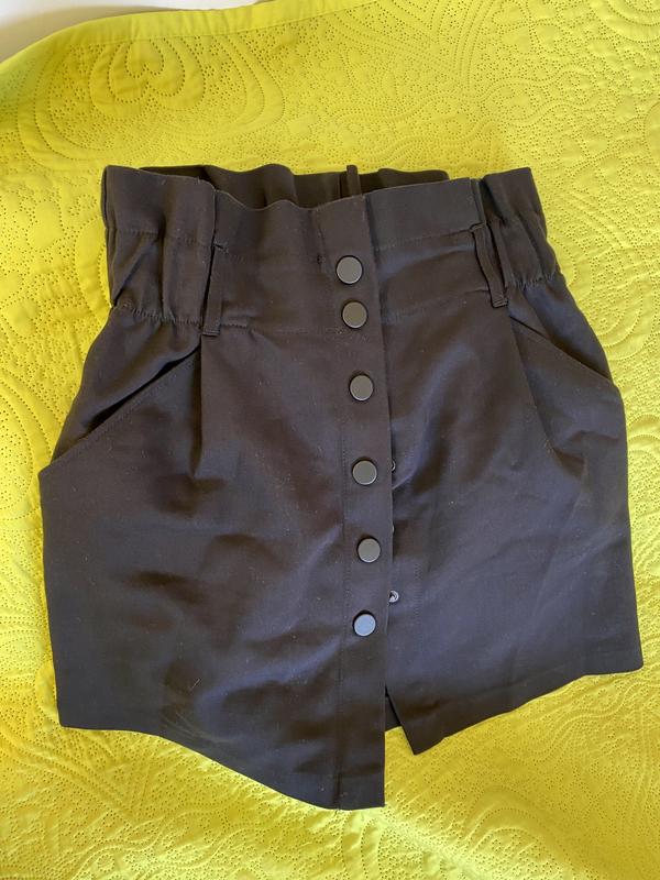 Мини юбку, переда на заклепочки,идеальное состояние,колика раз одетая,черный оттенок,камера искажает оттенок,на С!в талии есть изюминка, бочка для пояска
