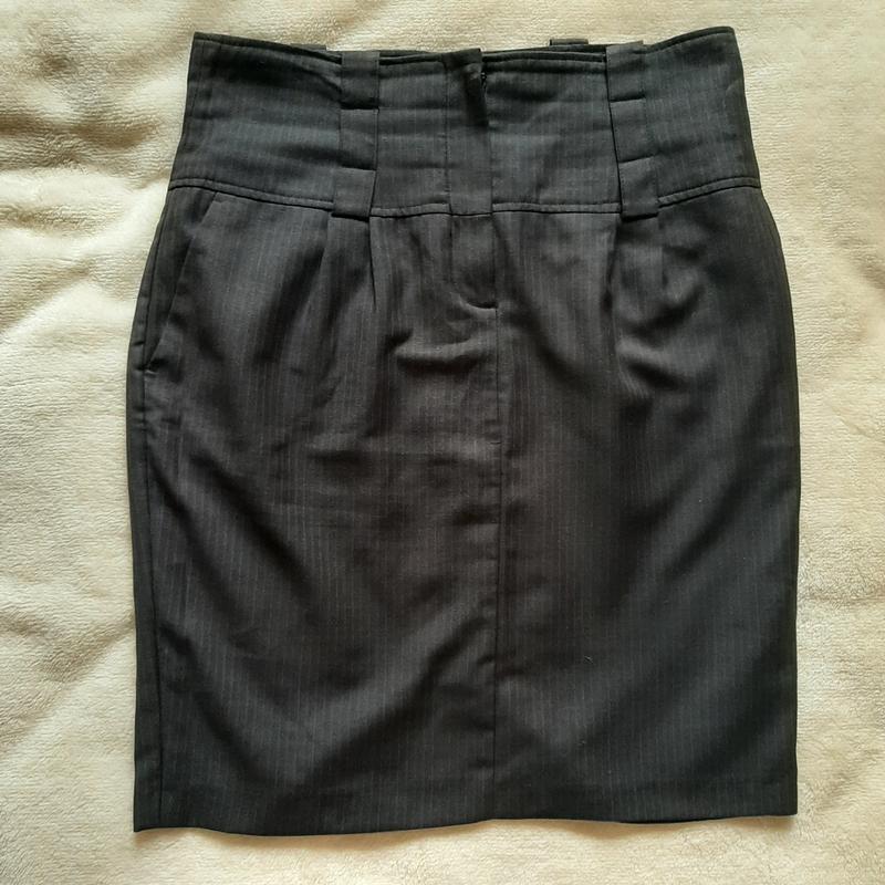 Юбка из костюмной ткани темно- серого цвета в полоску ПОТ- 40 см ПОС- 52 см Длина- 54 см