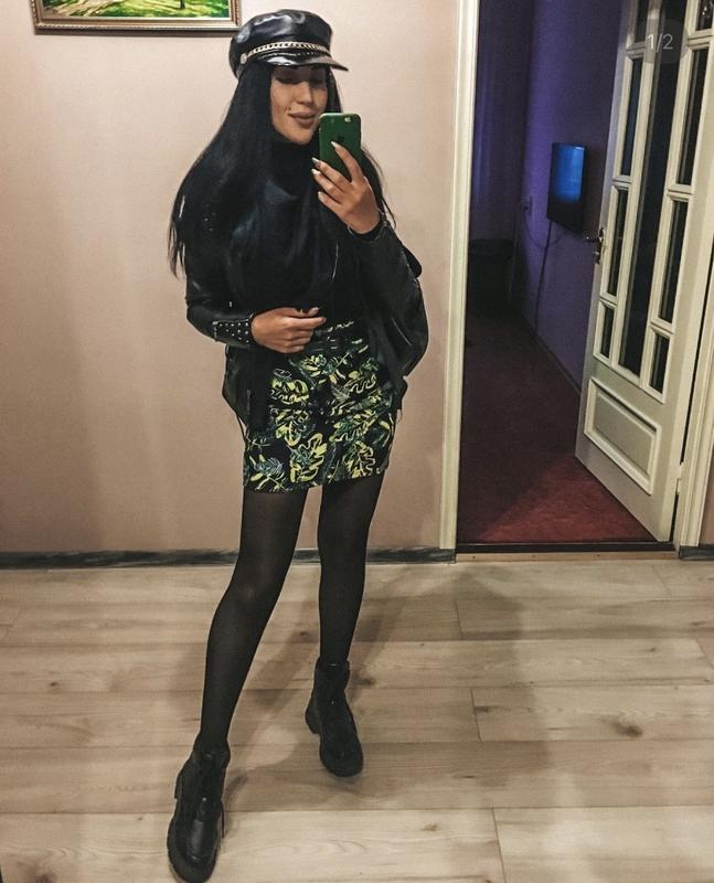 Тянется хорошо, принт яркий , неоновые листики , размер s/m Ткань неопрен