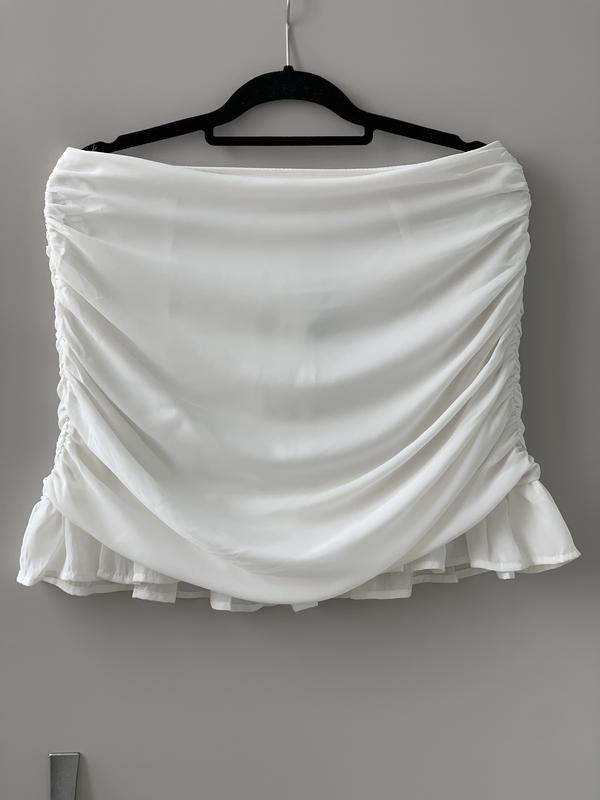 Юбка новинка, цвет не белоснежный, а цвет молока. Размер L. Длина 42 см. ПОТ 45 см, ПОБ 52 см.