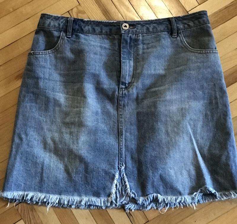Мини юбочка джинсовая, с разрезом спереди.
