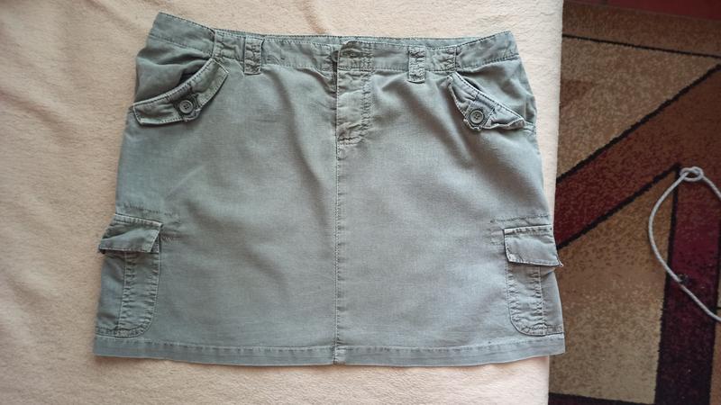 Юбка лёгкая, приятная на ощупь. Размер 12, на лето то что нужно. Состав хлопок плюс лëн. Длина 38, ширина 55, по талии 45
