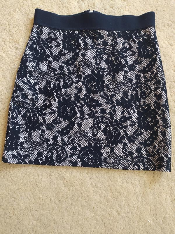 Юбка трикотаж на вид гипюровая, пояс резинка, спинка на молнии. ПО пояса 32 см, ПО бёдер 39 см, длина 38 см.