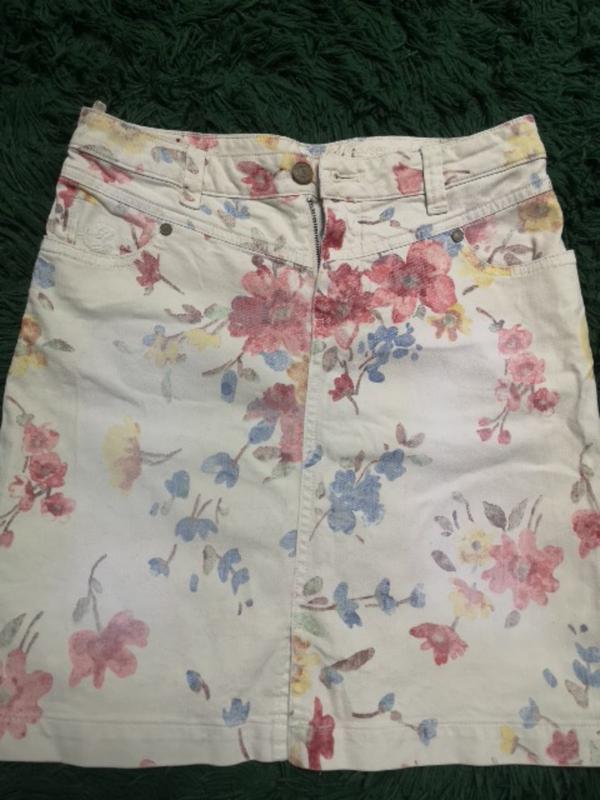Стрейч коттон, Основной цвет - слоновая кость Спереди небольшой разрез. Пояс - 36 Стеона - 44 Длина - 45